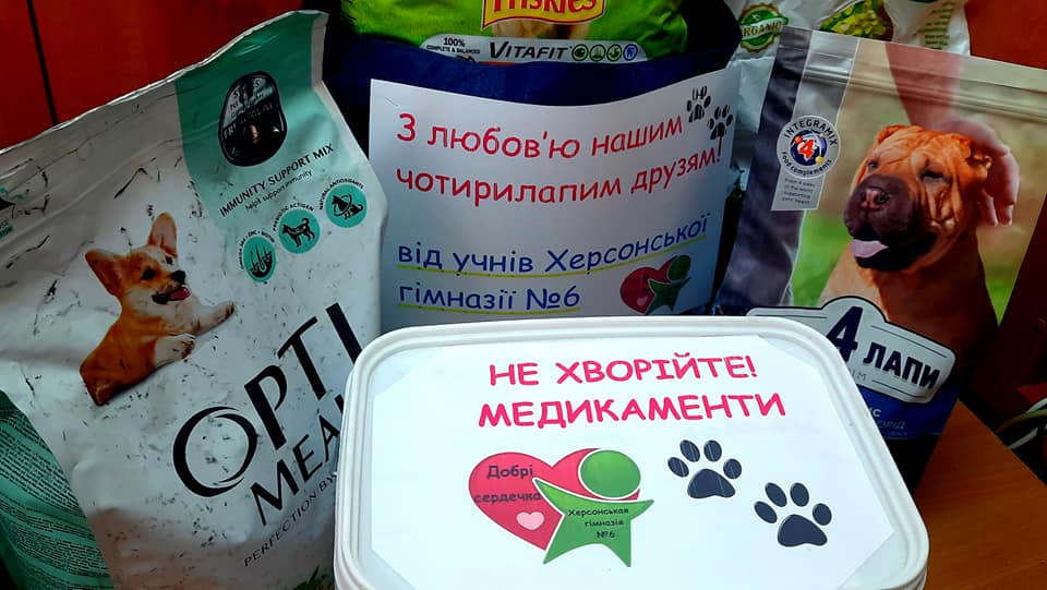 У Херсонській гімназії №6 пройшла Всеукраїнська благодійна акція "Happy Гав для Сірка", головною метою якої було допомогти притулку для безпритульних тварин. Цього року ми допомогли притулку "4 лапи" у нашому місті.