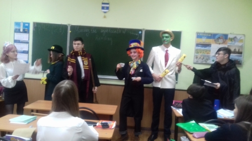 Такий оригінальний жанр, як «Living Statues» («Живі статуї») у виконанні 10-класників (уч. Солодовнікова О.І., Фролєнкова Г.М., Сорокіна О.С.) допоміг зробити свято магії англійської мови незабутнім. Вони показали світ Fantasy в образах чарівних персонажів: Маски, Гаррі Поттера, Капелюшника, Леприкона. Статуї оживали, якщо чули правильні відповіді учнів на запитання вікторини у рамках англійських творів. Особового колориту цьому заходу додавали артистизм та харизма акторів, відповідні до ролей костюми та реквізити.
