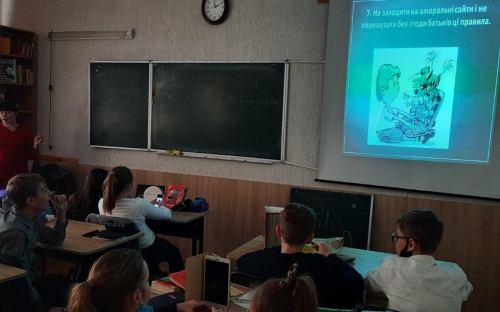 9 лютого у світі відзначається День Безпечного Інтернету. На сьогодні проблема безпеки дітей в Інтернеті постала особливо гостро. Аудиторія користувачів всесвітньої мережі дедалі розширюється і її переважну частину становлять діти та підлітки, які не усвідомлюють повністю загроз, що можуть чекати їх у віртуальному просторі. З цієї нагоди до Херсонської гімназії № 6 завітали працівники ювенальної превенції шкільні офіцери поліції Грибко В.В. та Луняка І.О. провели для учнів 7-А та 7-Б класів лекцію на тему: «Безпечний Інтернет». Шкільні офіцери надали учням поради щодо спілкування в Інтернет-спільнотах, соціальних мережах та поводження в них. Також розповіли про ризики, з якими школярі можуть стикатися в інформаційному просторі, пояснили, яку інформацію про себе можна розміщувати, а яку краще не варто. В учнівських колективах в цей день проводилися години спілкування на тему: «Безпека в Інтернеті», «Безпечний Інтернет». У гімназії пройшла виставка дитячих малюнків «Діти та інтернеті». Учнівське самоврядування провело з 6-7 класами інтерактивну онлайн-гру «Кахут», на шкільному радіо лунала радіолінійка «Правила безпеки в інтернеті».