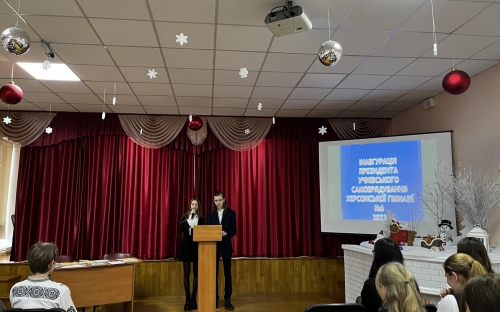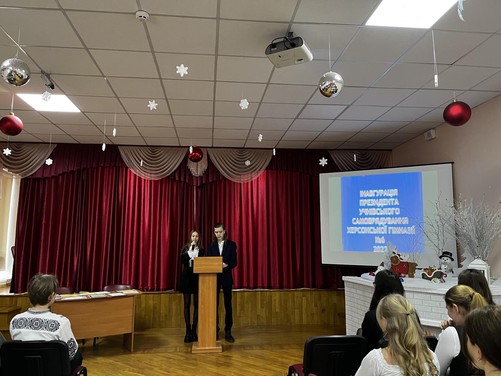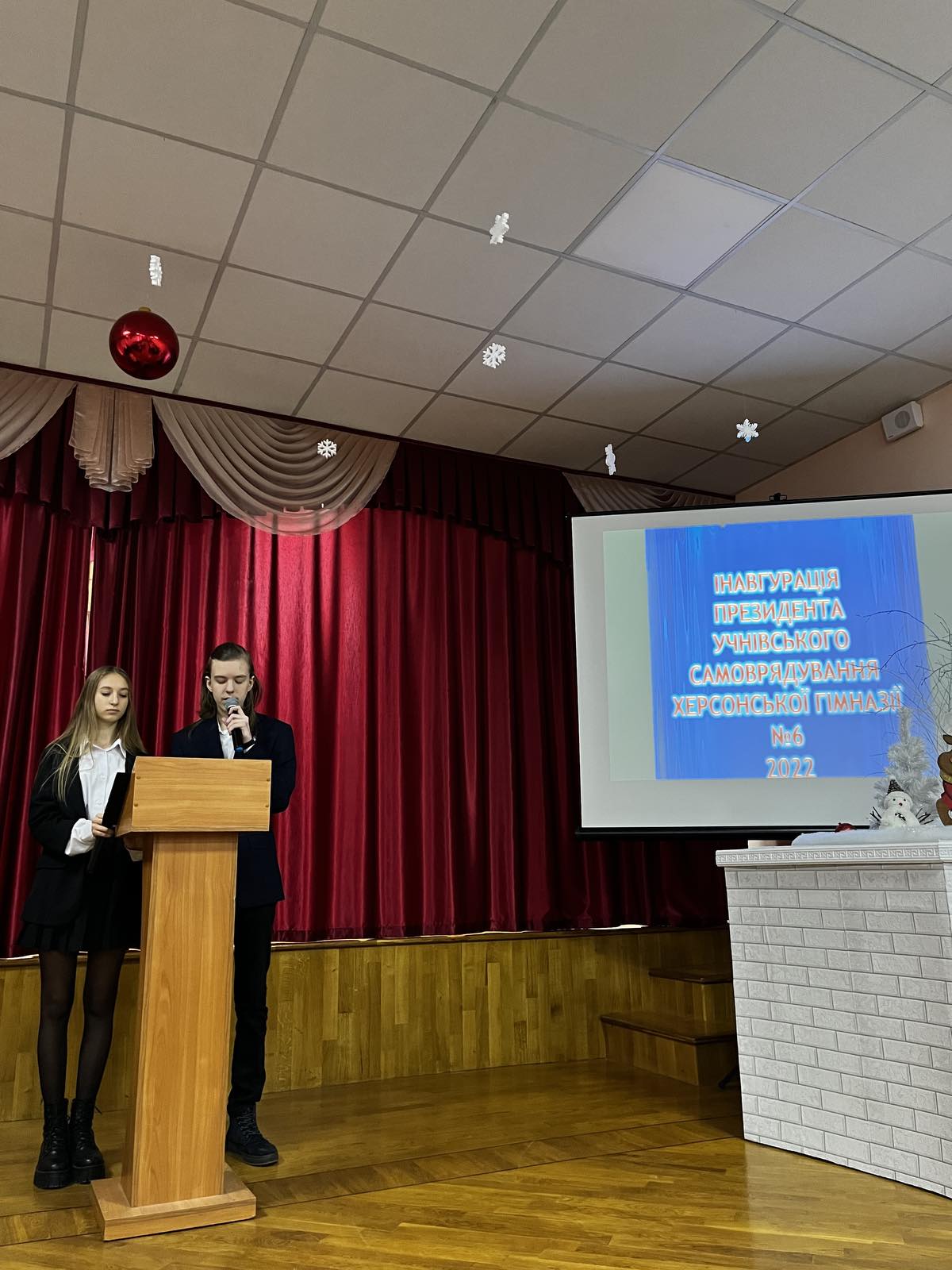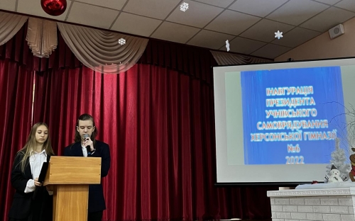 11 січня відбулася інавгурація нового президента учнівського самоврядування. За результатами волевиявлення гімназистів 7-11 класів президентом став учень 9-б класу Резніченко Дем’ян, який склав присягу на шкільному статуті та представив команду, з якою буде співпрацювати протягом 2-х років. Кожен з них очолюватиме своє міністерство у шкільному парламенті, з гідністю відстоюватиме інтереси гімназичної родини та підвищуватимуть імідж нашого закладу за його межами.