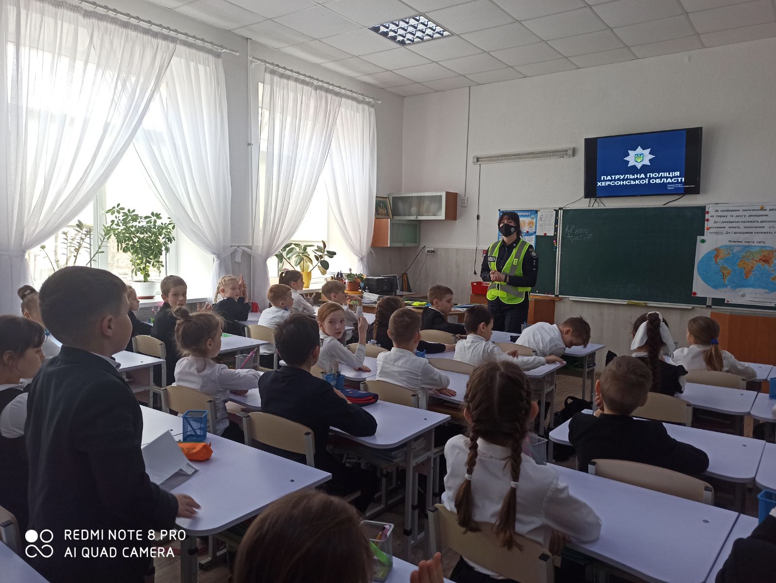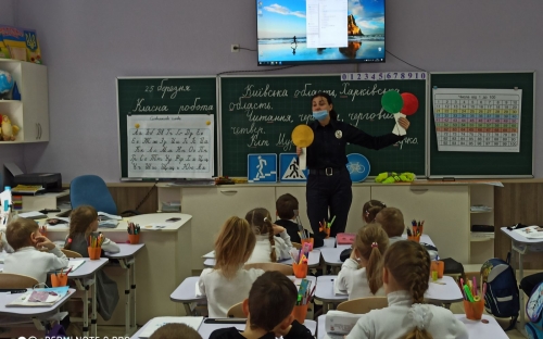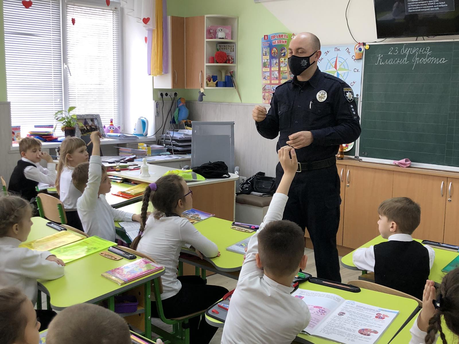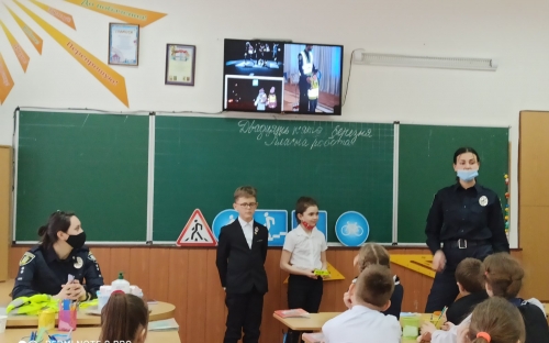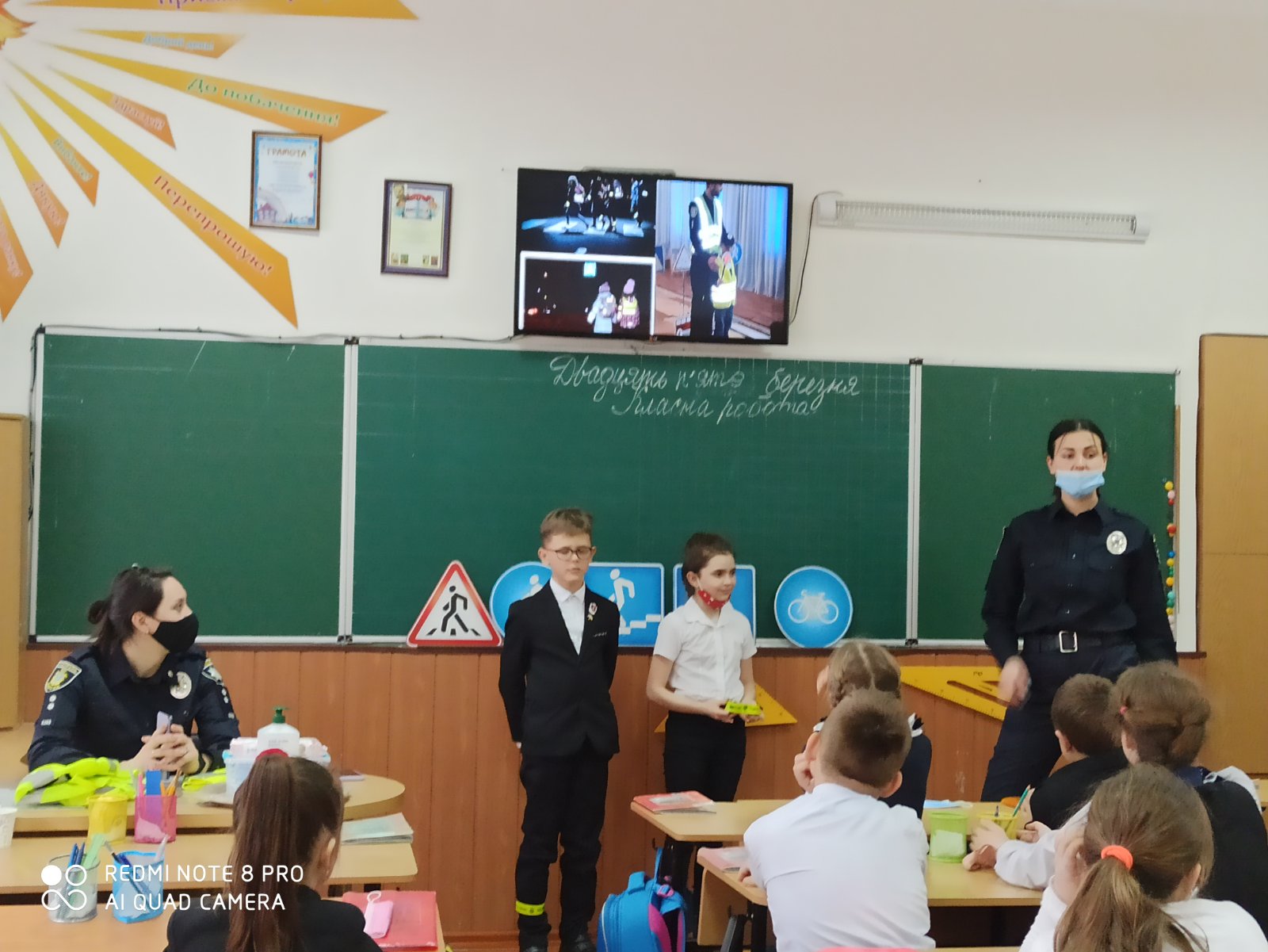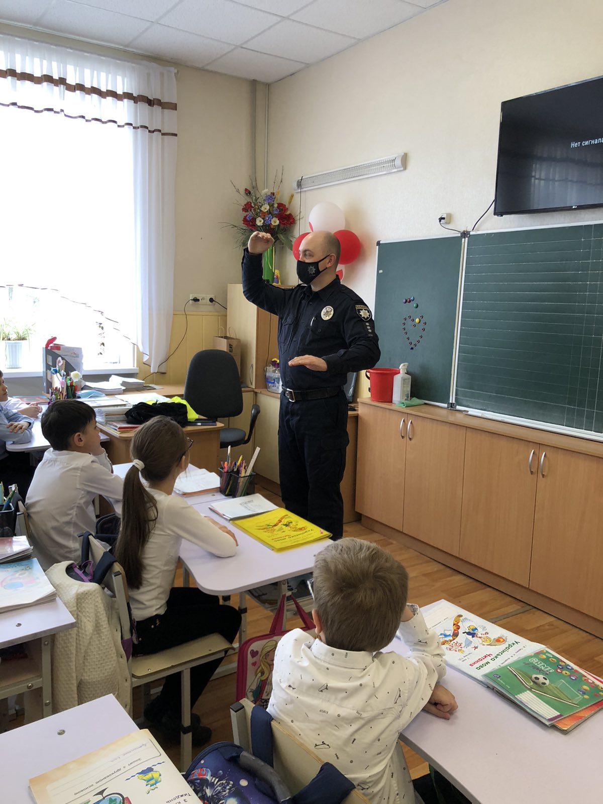 Перед початком весняних канікул до гімназії завітали шкільні офіцери поліції Грибко В.В., Клімова А.В., Ненько А.В. та Луняка І.О., які завітали до учнів молодших класів. Інспектори провели з дітьми цікаві ігри та профілактичні бесіди на такі теми: «Увага! Безпечні канікули!», «Правила дорожнього руху» й «Правила поведінки з незнайомими людьми».