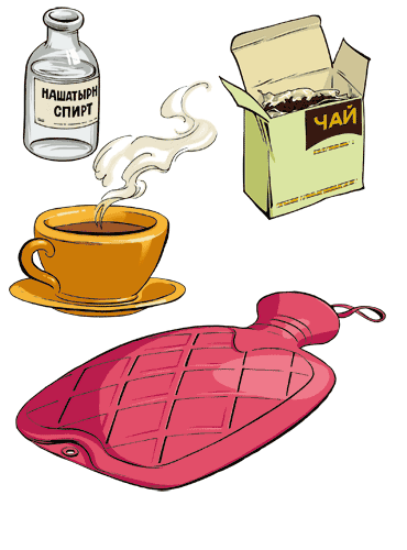 - потерпілого необхідно винести на вулицю і розстебнути одяг на грудях. На голову покласти холодний компрес, а до ніг – грілку, оббризкати обличчя холодною водою, дати понюхати нашатирний спирт, напоїти міцним чаєм, кавою.
