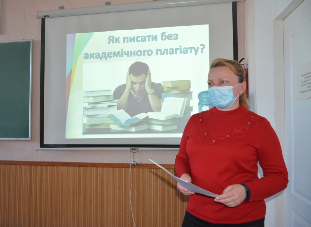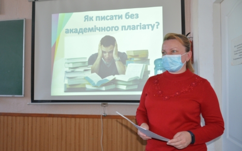 Оксана Золотухіна, завідуюча відділом електронної бібліотеки, детально розповіла про відмінності між плагіатом та порушенням авторських прав. Тетяна Донченко, завідуюча відділом документів іноземними мовами, надала практичні поради, як правильно цитувати та перефразовувати у своїй роботі результати чужих досліджень.