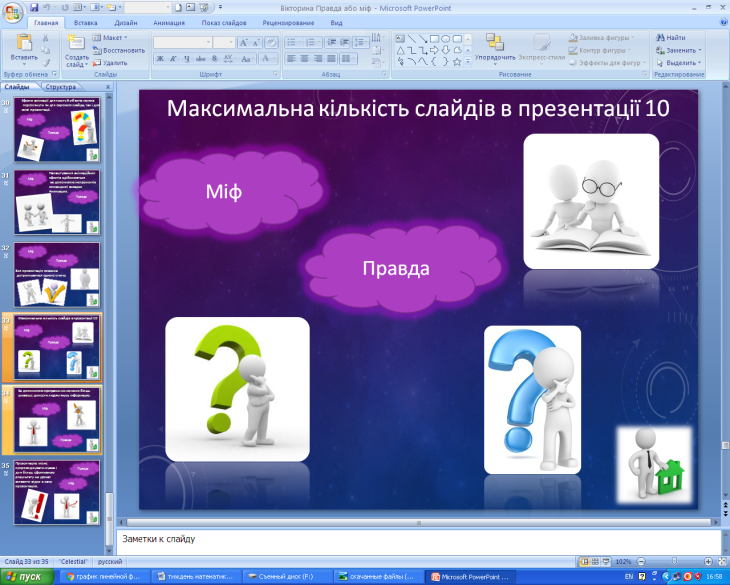 У 8 та 9 класах проведено вікторина для знавців інформатики «Правда або міф». При проведенні учні показали свою зацікавленість, показали свої знання з предмету та жагу до перемоги.