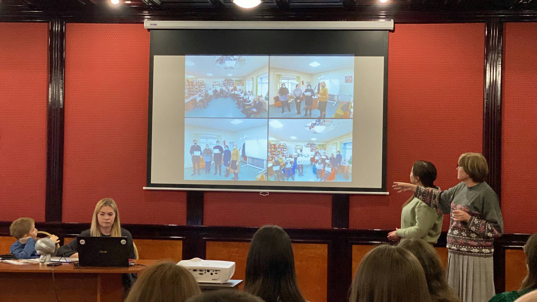 Керівник Школи миру гімназії Наталя Шальнова разом з гімназистами Шестаковою Дарією, Клєпіковою Дарією, Аллахвердовою Міланою, Резніченко Дем’яном розповіли спільноті Шкіл миру з різних куточків України про свій дворічний досвід роботи та слухали презентації інших учасників проєкту. Запрошені учні із задоволенням взяли участь у нетворкінгу, флеш-мобі з гімном «Школи миру», ярмарці кращих практик. Незвичайно творчо відбулося планування роботи Шкіл миру на 2022 рік. Команди отримали завдання представити роботу у вигляді кінофільму у жанрах: мелодрама, комедія, вестерн, трилер, детектив, бойовик, мильна опера. Творчі результати потішили всіх присутніх! Тож з впевненістю можна сказати – у Шкіл миру-2022 є гарне майбутнє!