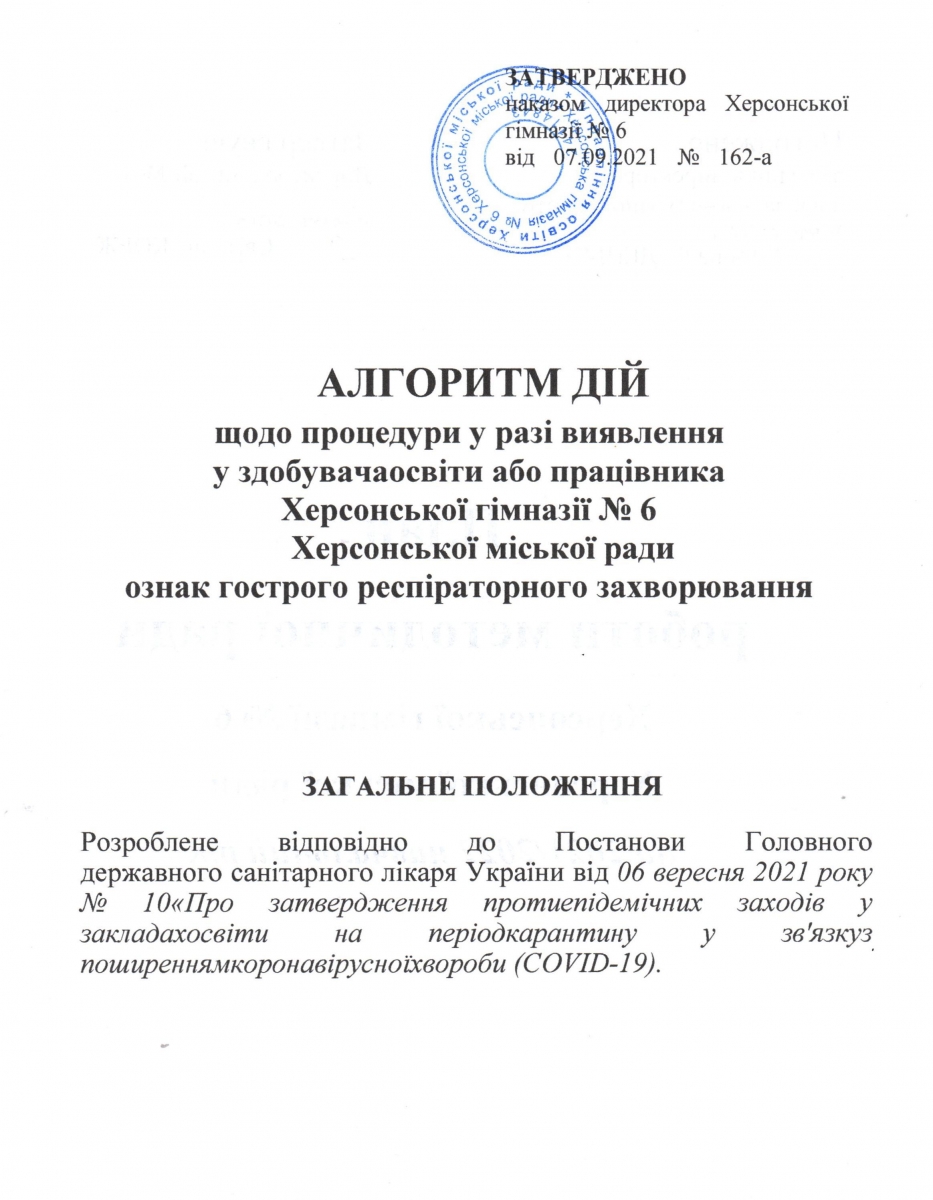 АЛГОРИТМ ДІЙ ПРАЦІВНИКІВ