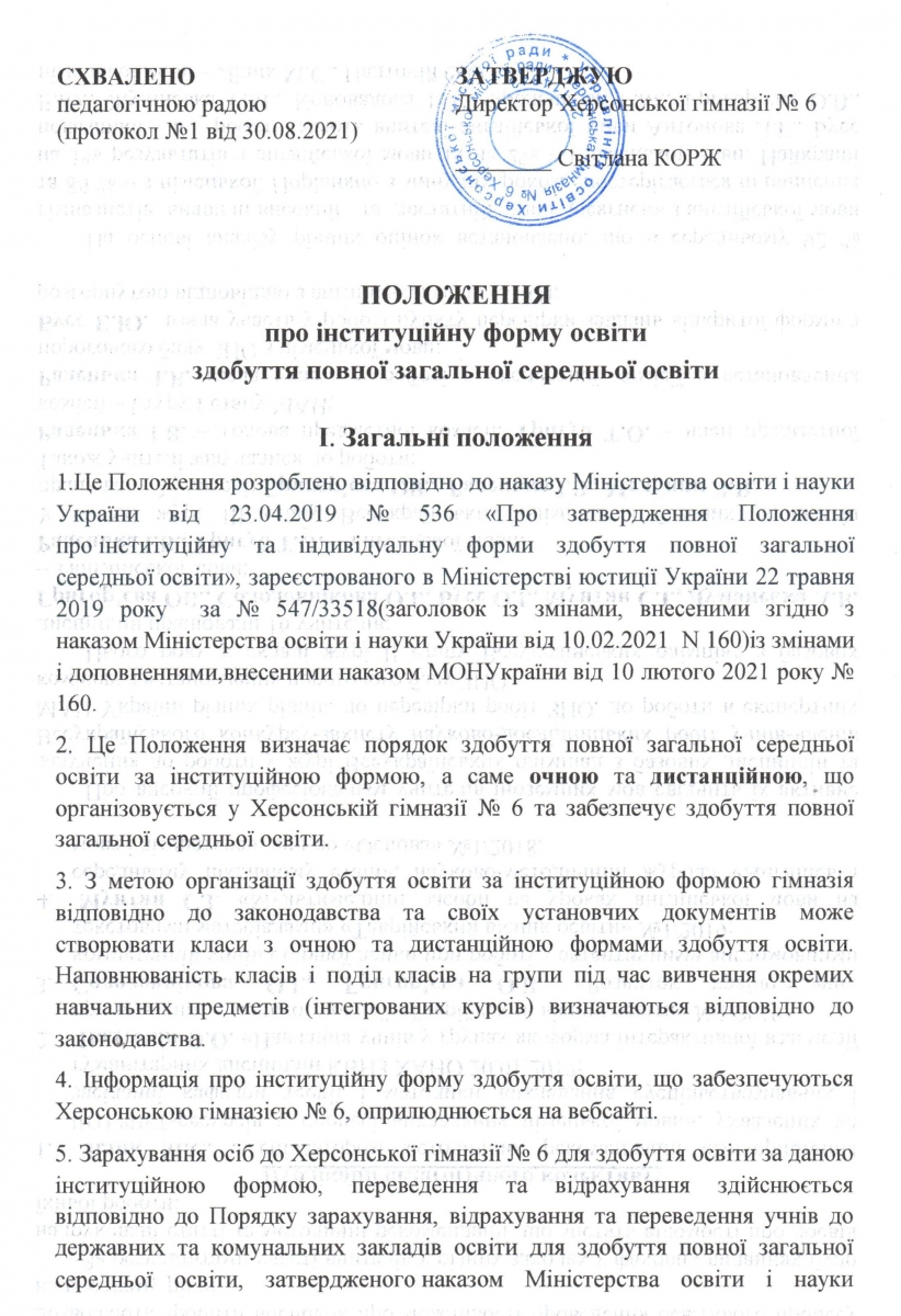 ПОЛОЖЕННЯ ПРО ІНСТИТУЦІЙНУ ФОРМУ ОСВІТИ