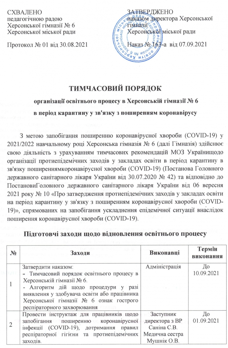 ТИМЧАСОВИЙ ПОРЯДОК ОРГАНІЗАЦІЇ ОСВІТНЬОГО ПРОЦЕСУ