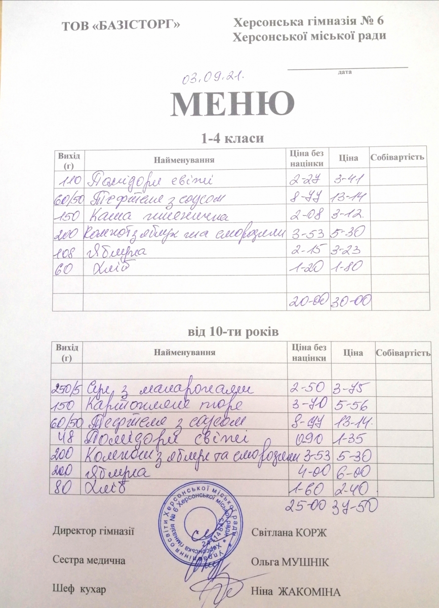 УНІФІКОВАНА ФОРМА МЕНЮ, ПЕРЕЙТИ ЗА ПОСИЛАННЯМ:    https://docs.google.com/document/d/1OLMzbhZvXGjFoSuvBrp7Bk0dmUs5yo4y/edi...