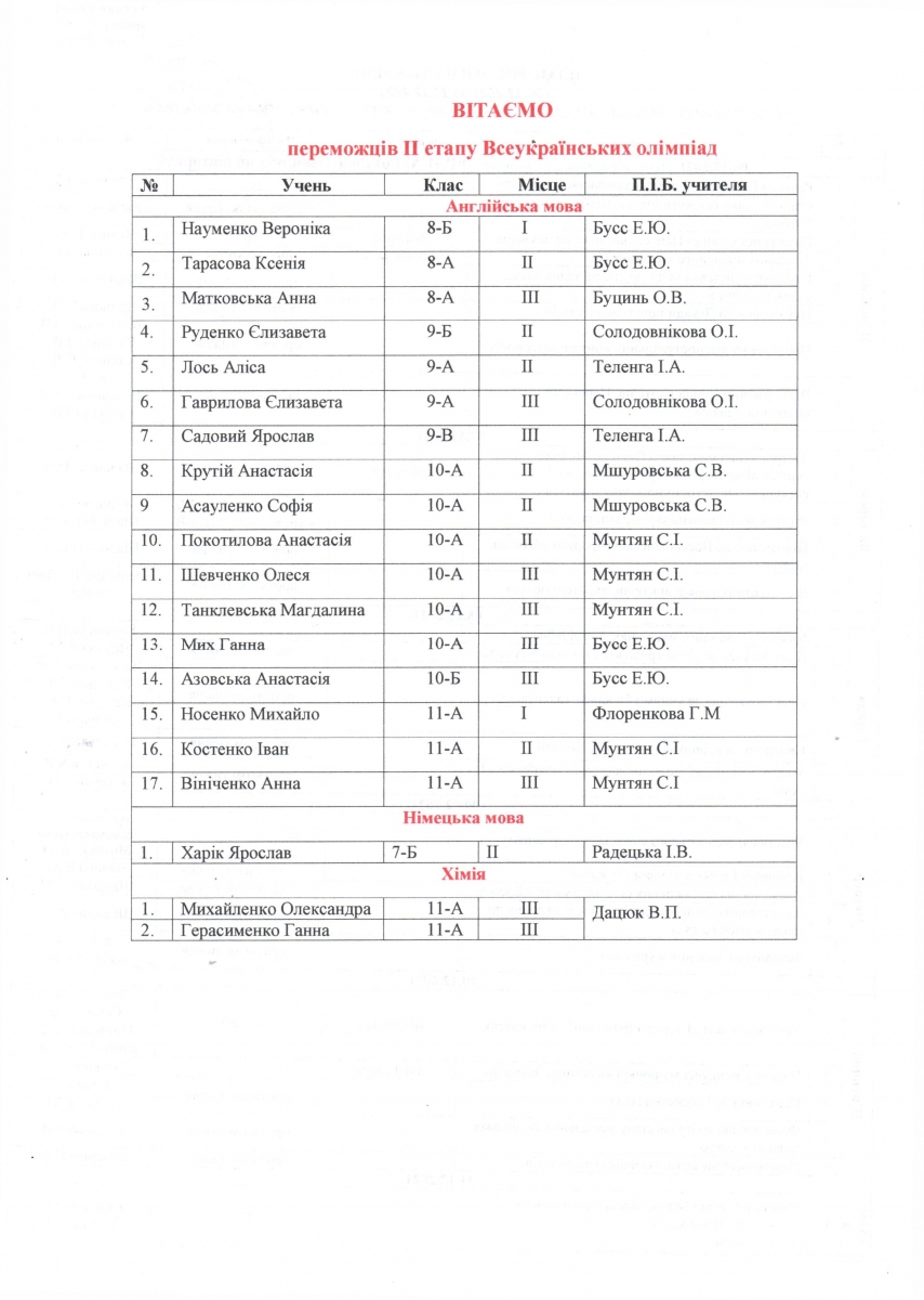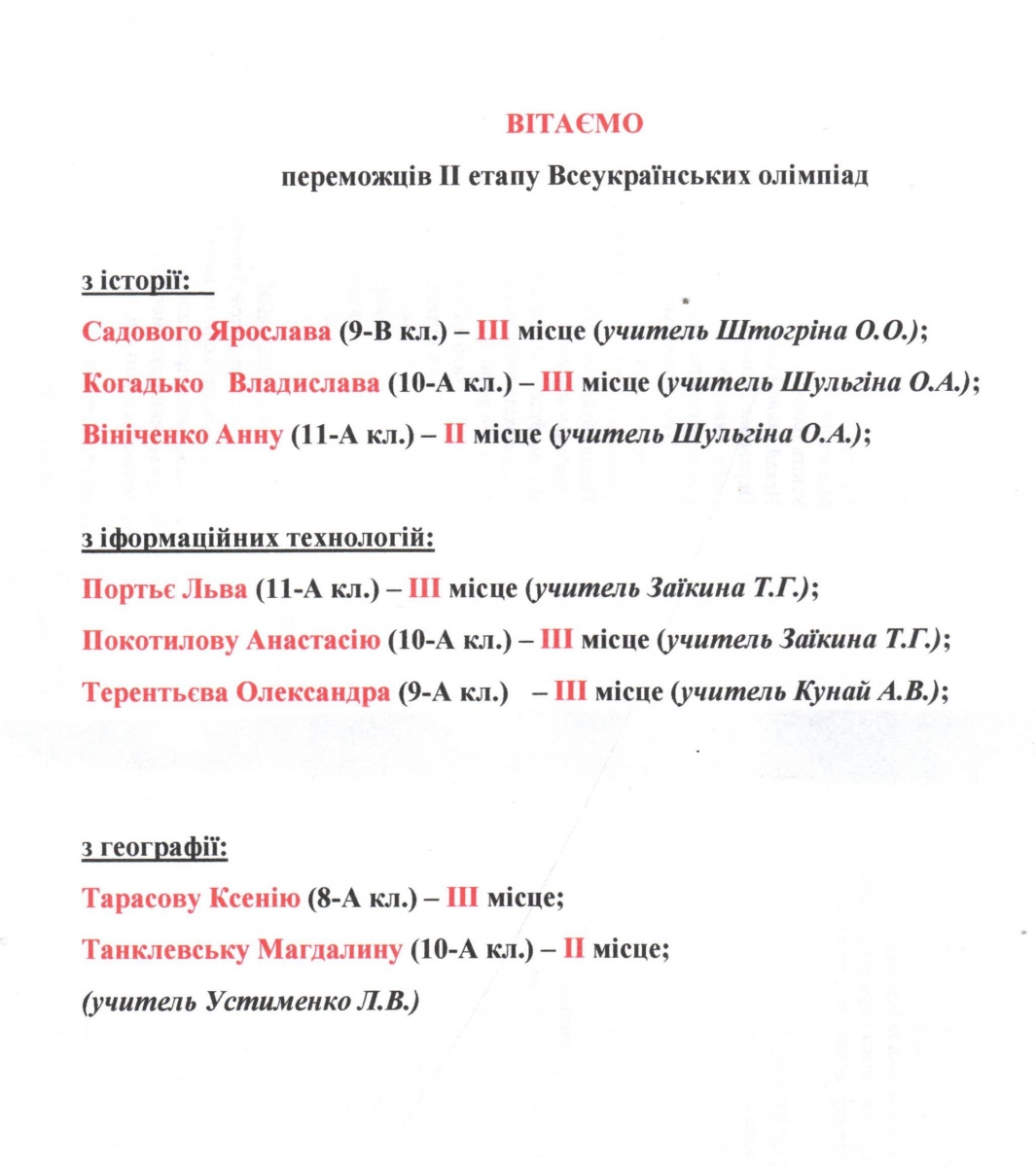 у Всеукраїнських олімпіадах з базових дисциплін,