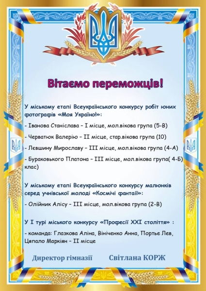 Лєвшину Мирославу, ученицю 4-А класу, – ІІ місце (учитель Лєвшина А.С.)