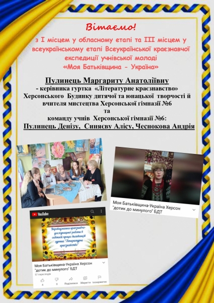 з перемогою в обласному заочному конкурсі «ПРОСТО ДОДАЙ ВОДИ» з нагоди відзначення Всесвітнього Дня води: