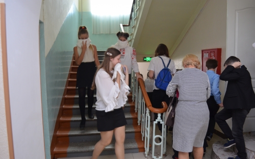Евакуація «ввідна «Пожежа» почалася об 11.40 годині. Практичний захід допоміг закріпити теоретичні знання і навички працівників гімназії та учнів правильно діяти в екстремальних ситуаціях та щодо надання допомоги потерпілим у разі потреби. Евакуацію особового складу та учнів гімназії з приміщення було проведено за 5 хвилин. Найкраще працював пост охорони громадського порядку, який організував патрулювання та спрямував напрям.
