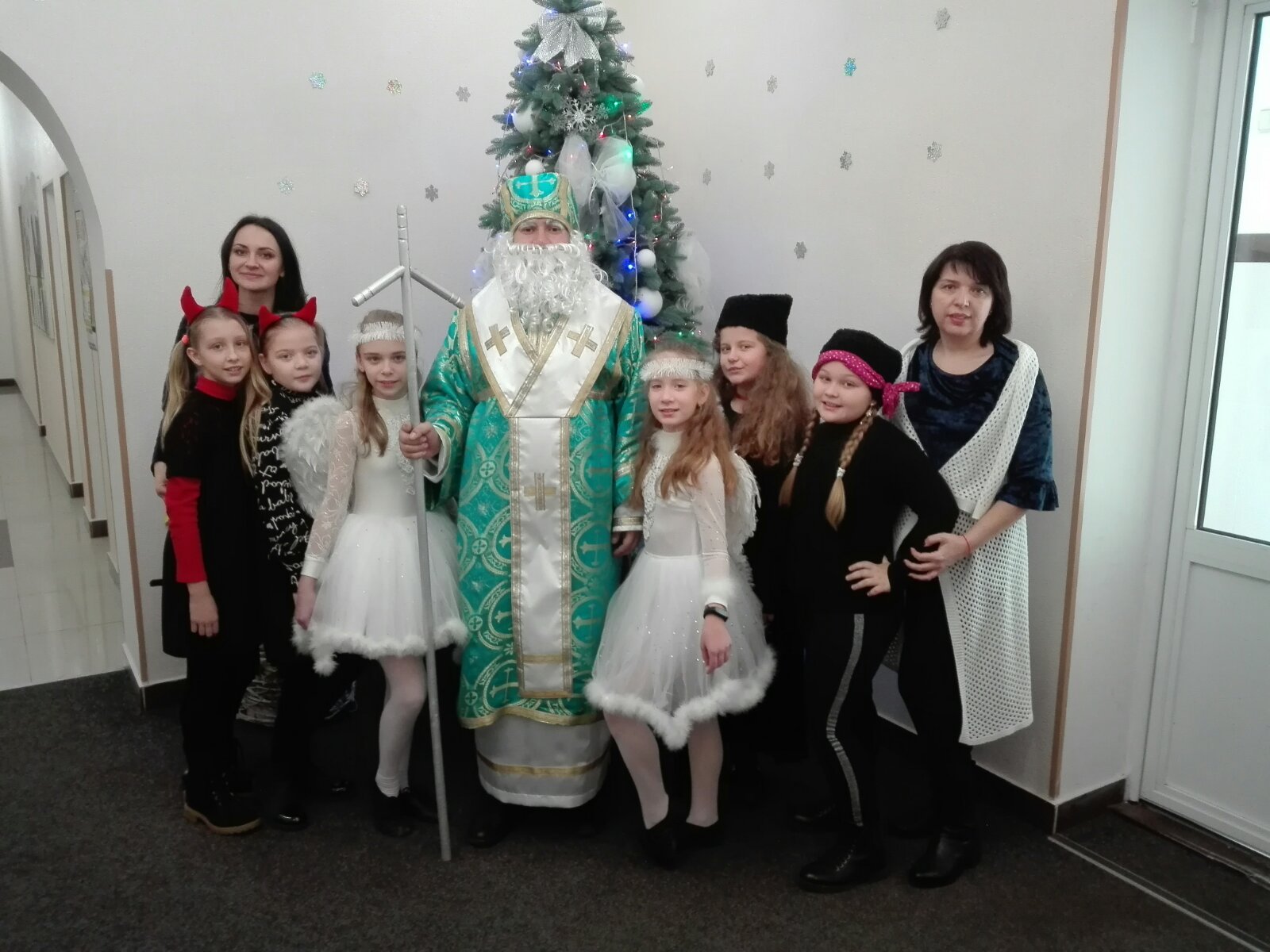 19 грудня до Хесонської гімназії № 6 завітав Святий Миколай зі свитою маленьких янголяток, щоб привітати дітей смаколиками та іграшками, а для неслухняних учнів чортенятка і розбійники принесли різочку! Вітаємо всіх зі святом!