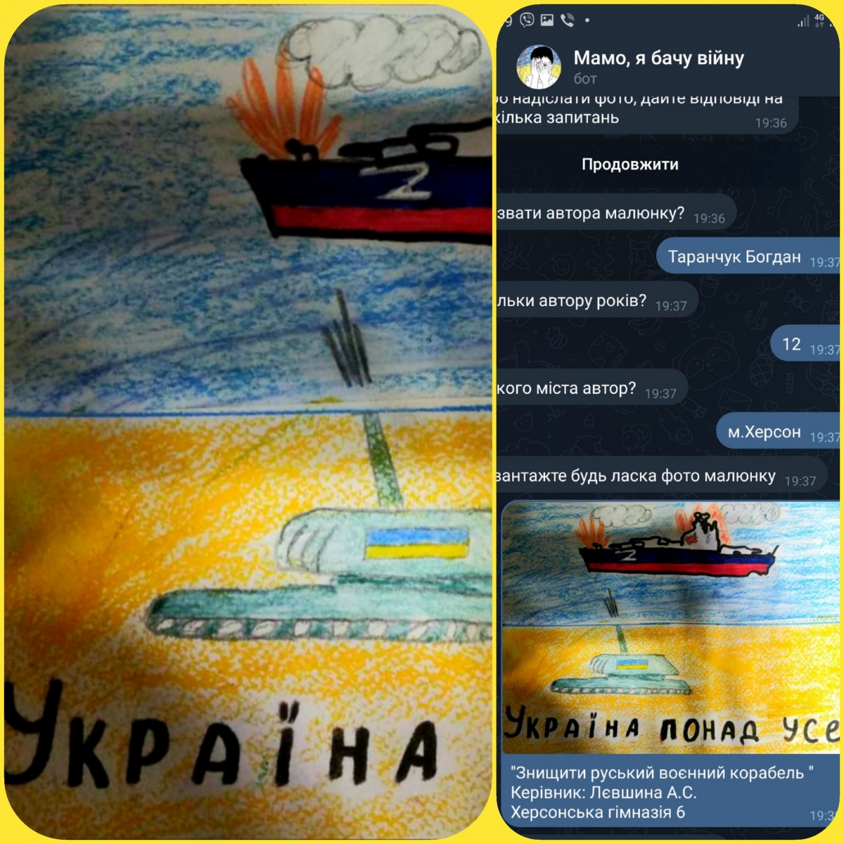 Учні Херсонської гімназії № 6 Херсонської міської ради взяли участь у Всеукраїнському проєкті "Mom, I see war" ("Мамо, я бачу війну").