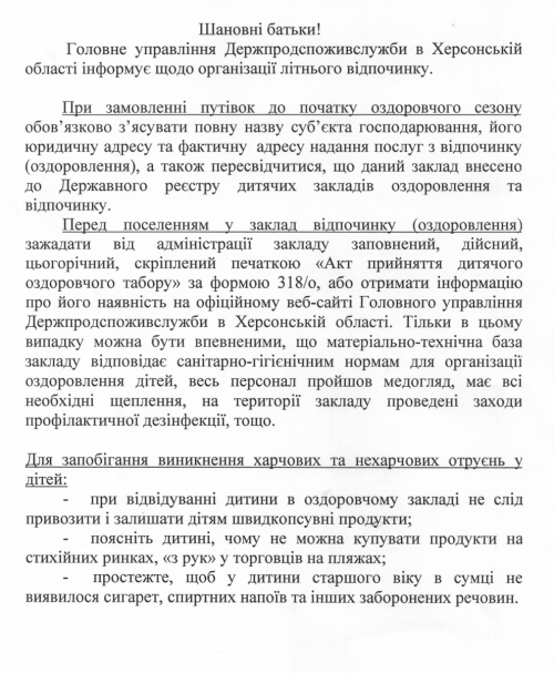 З питань бронювання та придбання путівок до літнього табору відпочинку "Юнга" звертатися за адресою: вул. Дорофеєва, 32.