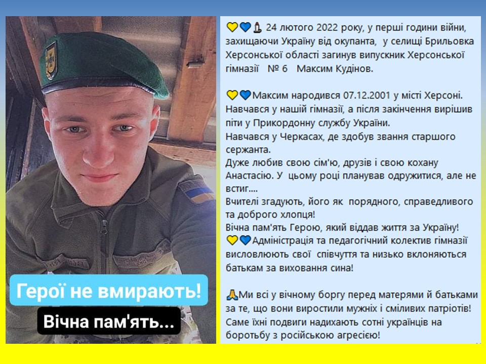 У Херсонській гімназії відбулася низка заходів присвячена пам’яті Героїв Небесної Сотні. На шкільному радіо звучала радіолінійка «Вони відлетіли в небеса». Усі гімназисти приєдналися до Акції «Подаруй свого Янгола Героям Небесної сотні». У всіх класах пройшли години спілкування «Шлях до свободи». У 10-х класах був проведений бібліотечний урок «Злетіли душі хлопців у світи».У Херсонській гімназії відбулася низка заходів присвячена пам’яті Героїв Небесної Сотні. На шкільному радіо звучала радіолінійка «Вони відлетіли в небеса».