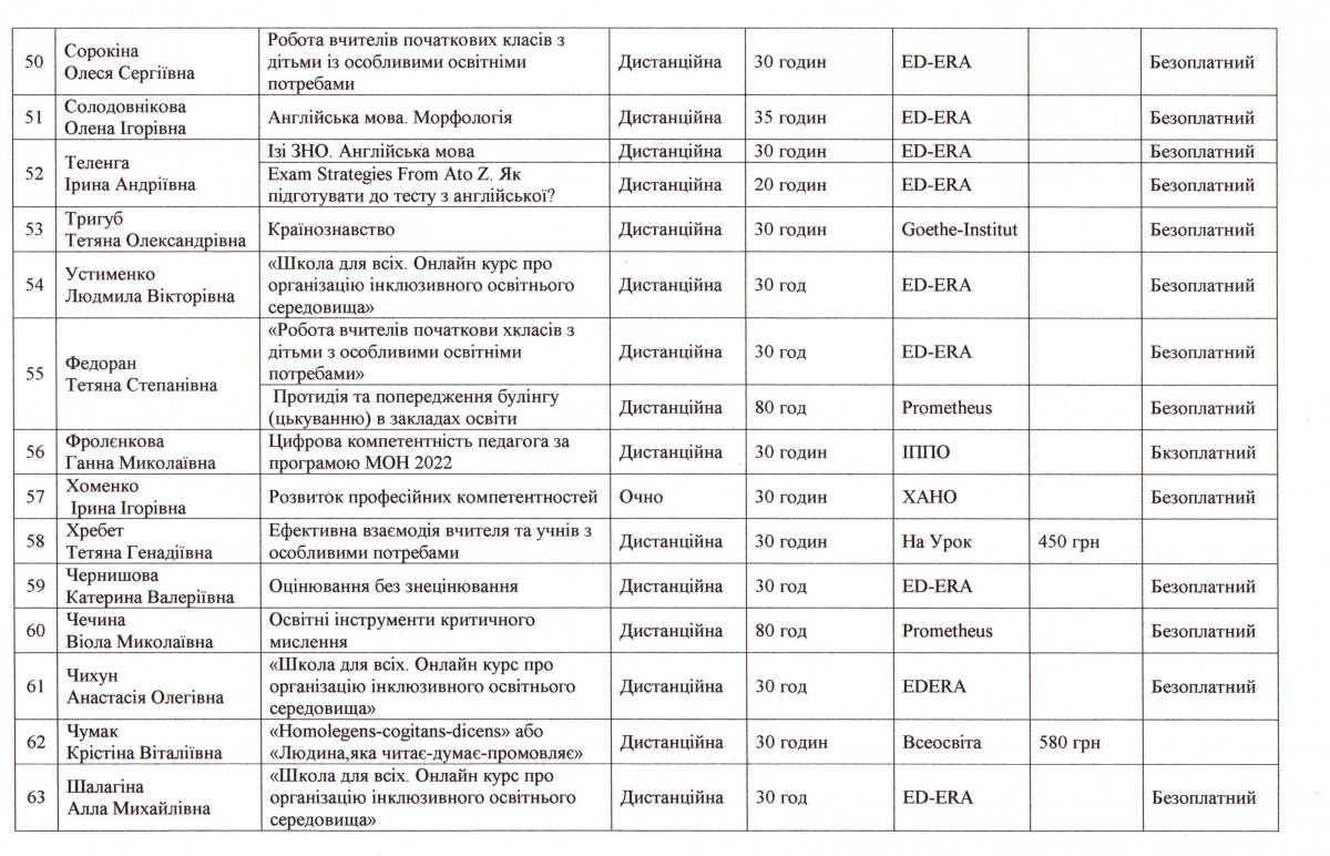 з підвищення кваліфікації педагогічних працівників