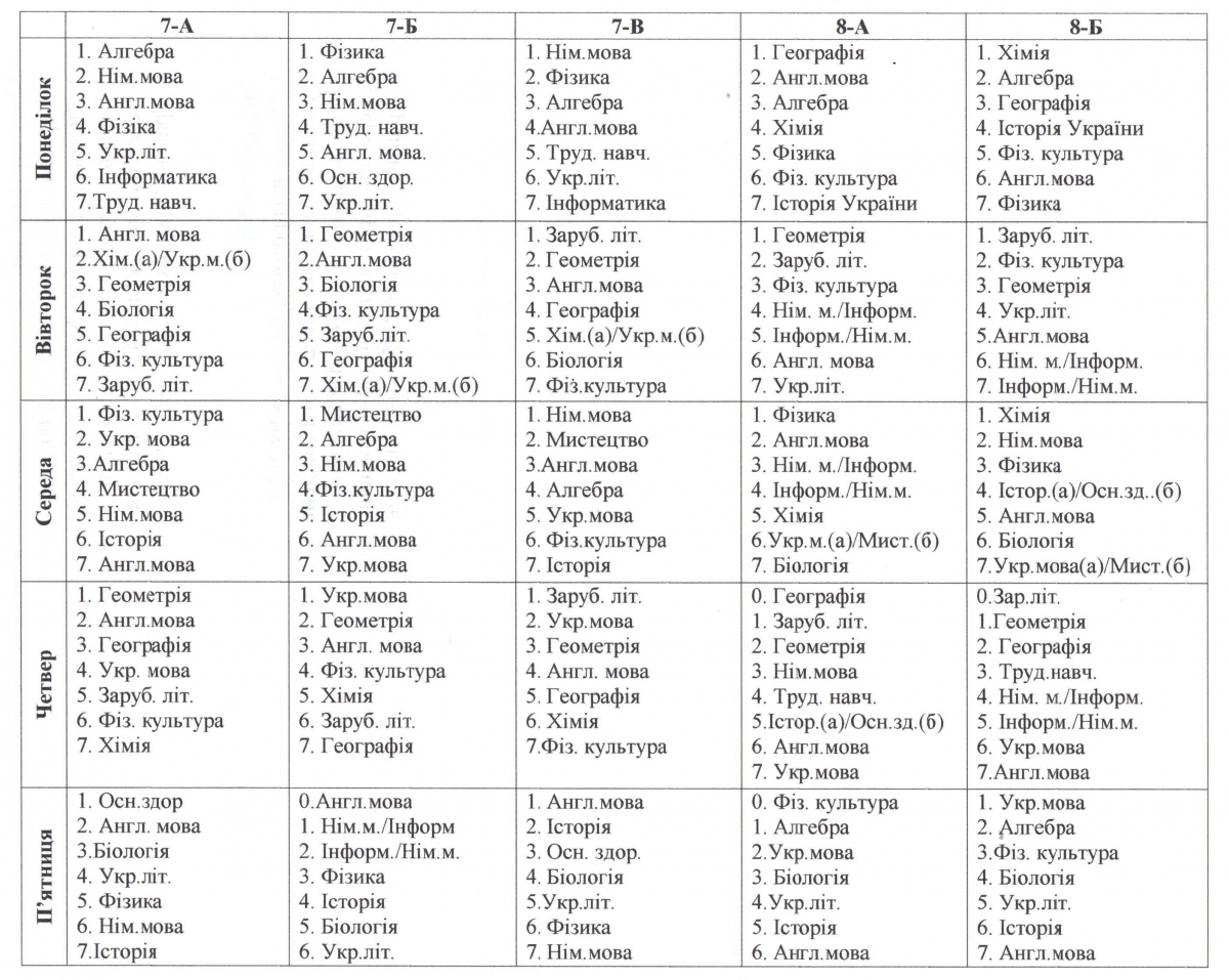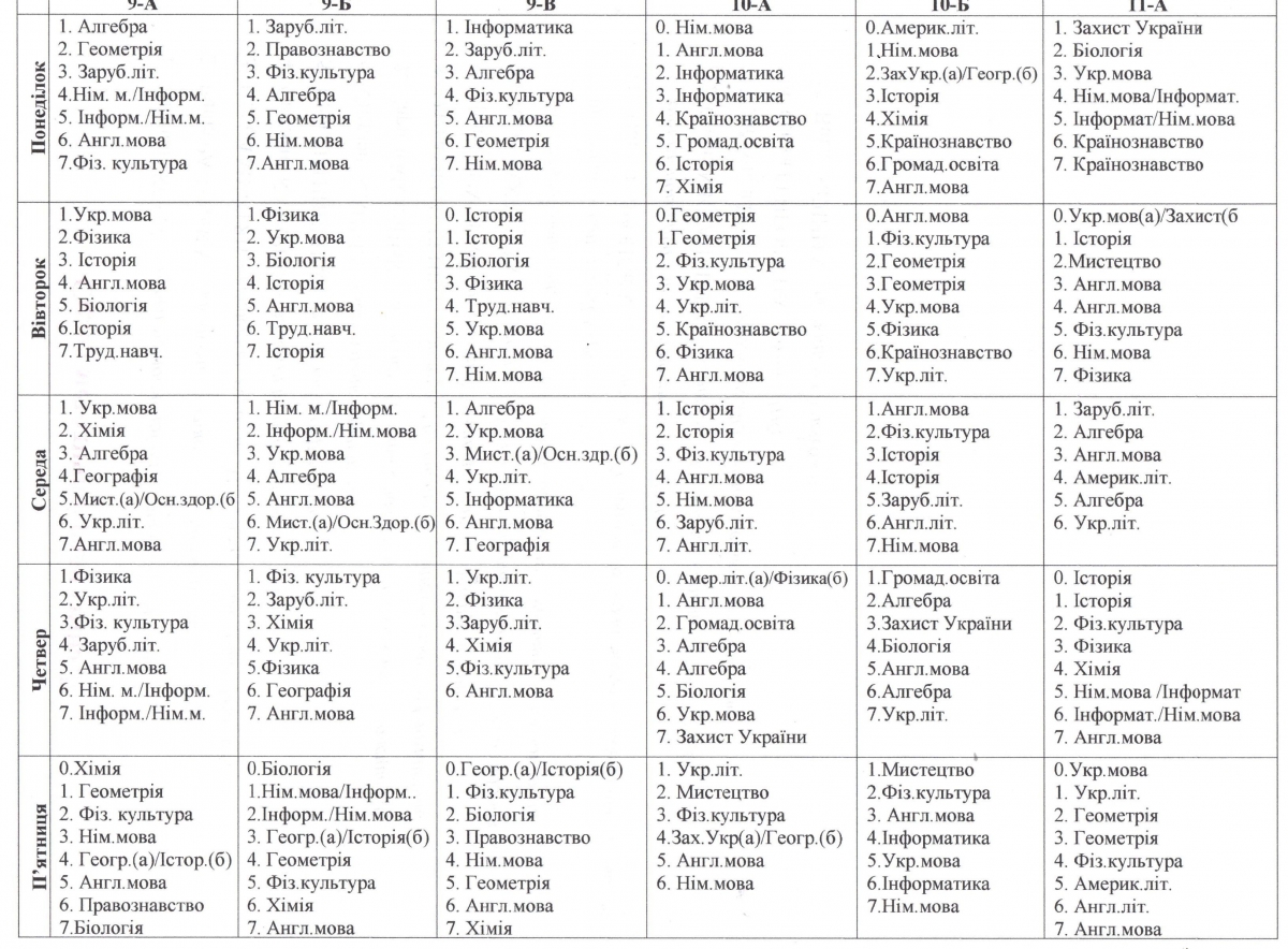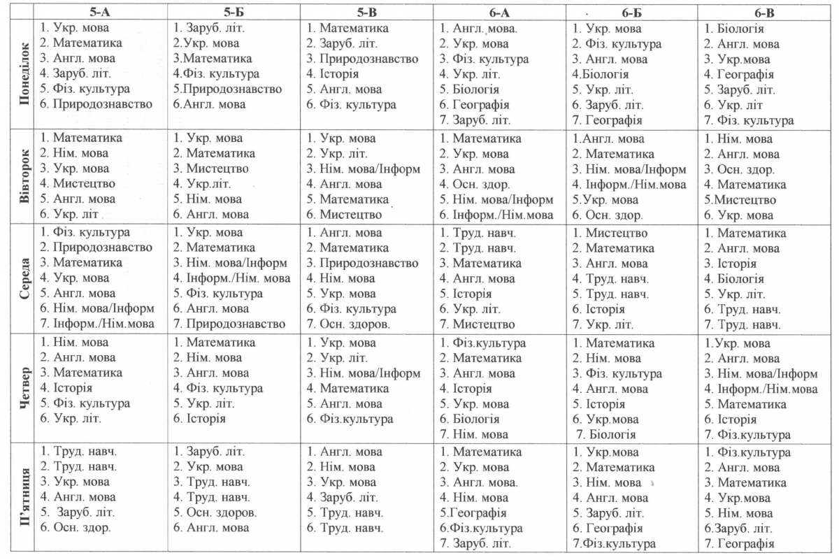 РОЗКЛАД УРОКІВ 5-11х КЛАСІВ У 2021/2022 НАВЧАЛЬНОМУ РОЦІ