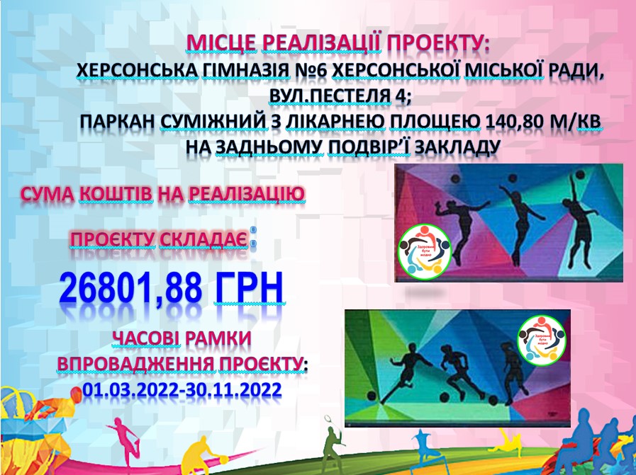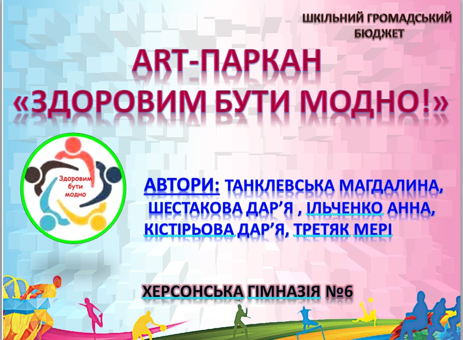 Танклевська Магдалина презентувала проєкт "АРТ-ПАРКАН "ЗДОРОВИМ БУТИ МОДНО". У рамках цього проєкту буде проведена акція "Здоровим бути модно", під час якої усі учні гімназії будуть залучені до створення арт-стіни, яка потім стане фотозоною та буде мотивувати їх вести здоровий спосіб життя та займатися спортом.