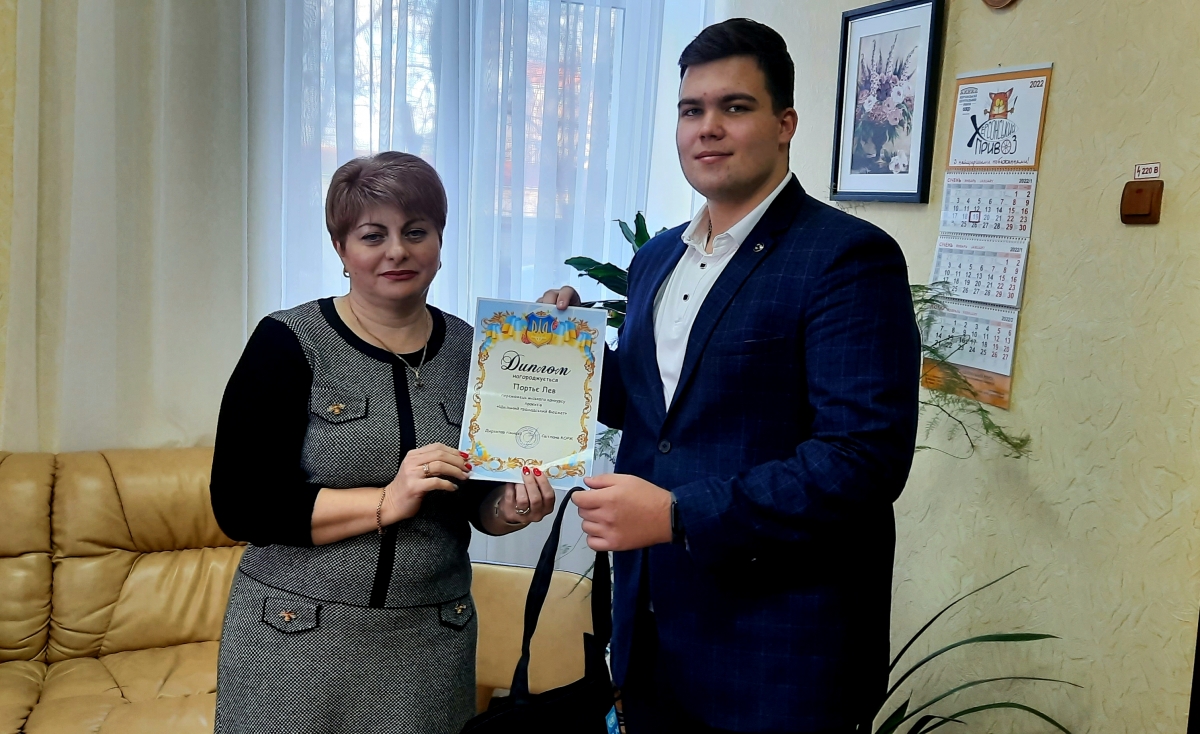 Вітаємо переможця Портьє Лева, учня 11 класу, автора проєкту "Затишне шкільне подвір`я"!