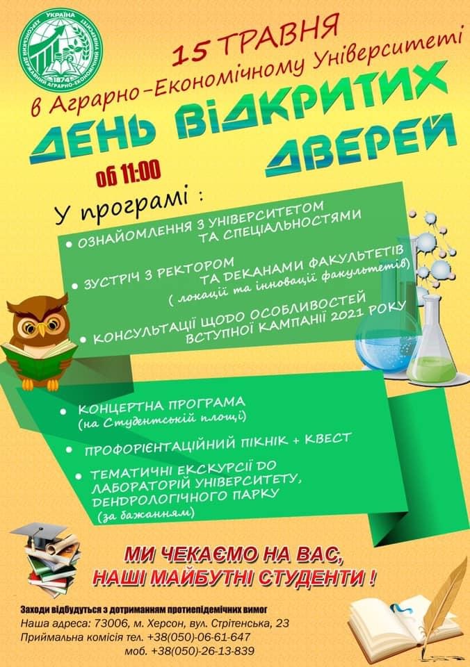 Аграрно-економічний університет запрошує на ДЕНЬ ВІДКРИТИХ ДВЕРЕЙ