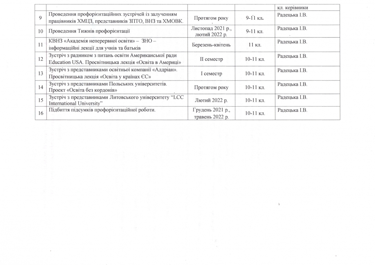 Заходи з профорієнтаційної роботи на 2021/2022 навчальний рік