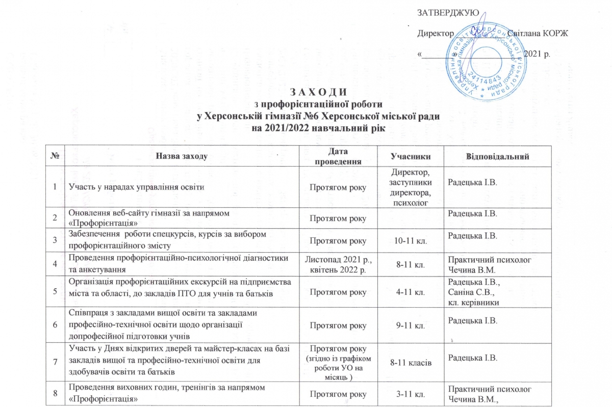 Інформація про проведену профорієнтаційну роботу у Херсонській гімназії № 6 Херсонської міської ради у 2020/2021 навчальному році