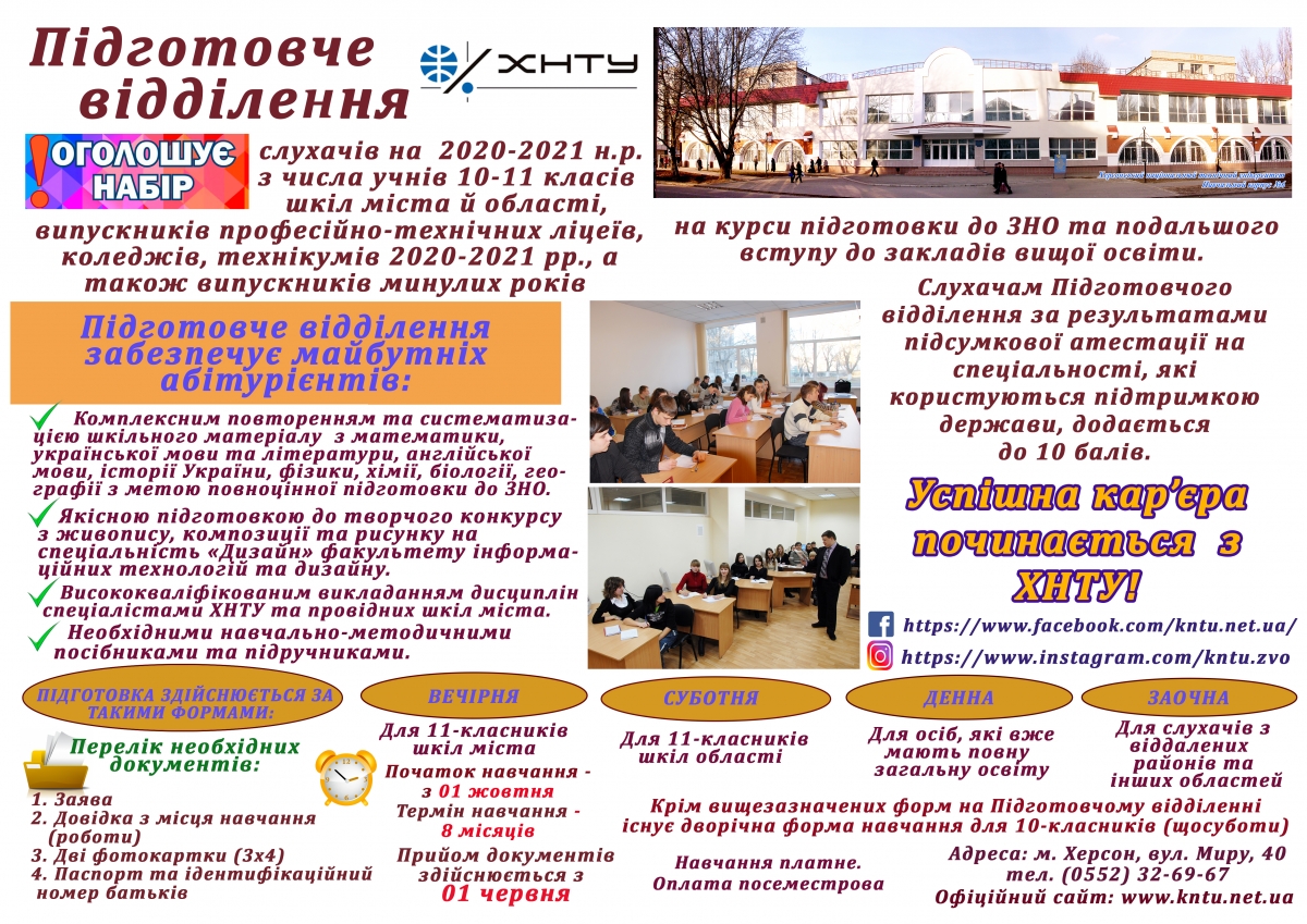 Херсонський національний технічний університет оголошує набір на підготовче відділення
